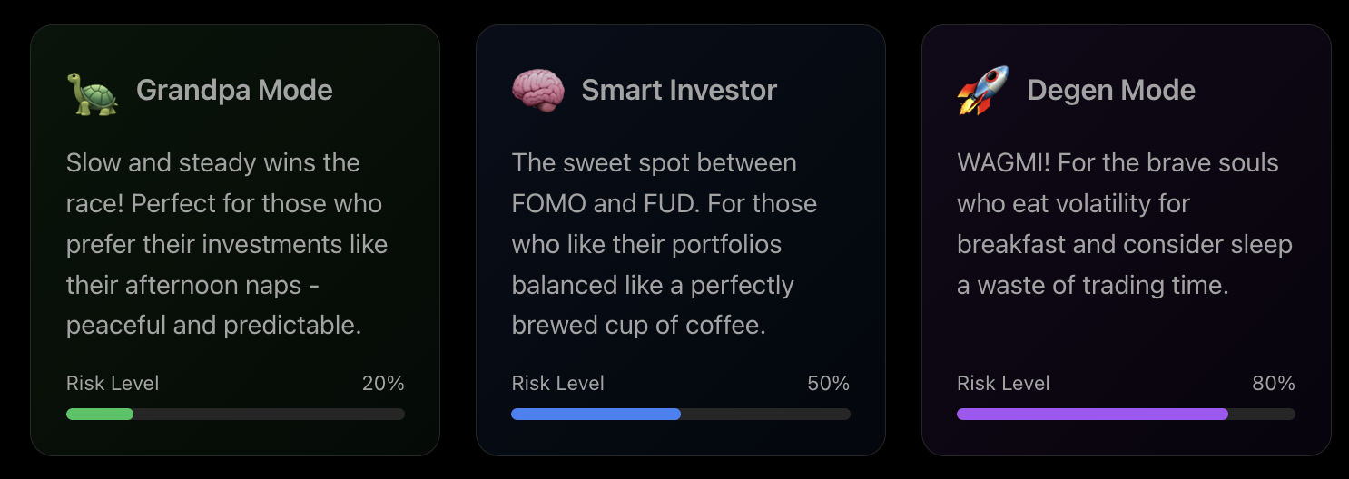 Through dialogue, you will be asked how much you want to invest and how long you plan to hold your investments. Based on this information, Franklin will suggest a portfolio of cryptocurrencies that fits one of the three profiles listed below: